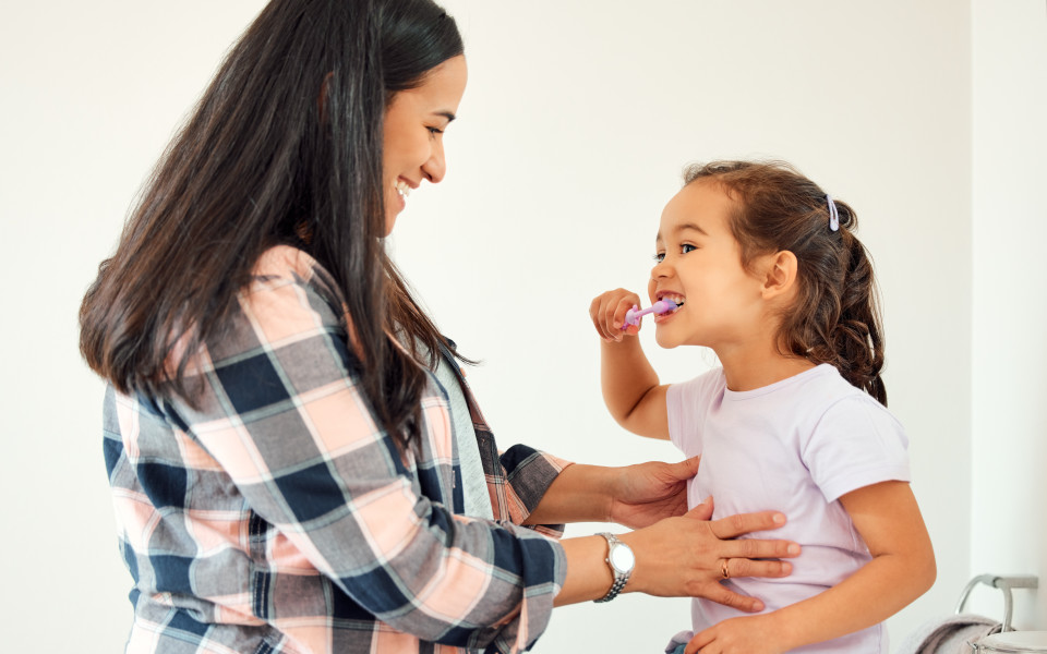 Brushing Your Child's Teeth - It is never too early to start brushing your children's teeth, especially when they have teeth. You can even start before the teeth are there. You can just wash their gums with a little bit of water and a wash cloth and it'll help get your baby used to getting their teeth brushed. For toddlers you definitely want to start, and I always tell people, start with evening for sure. Brushing their teeth after the last bottle or food for the day and then as you master that, start doing it twice a day. I always recommend starting with the child practicing brushing the teeth and getting to play with the tooth brush and pretend like they are doing it and then you can kind of follow up and make sure they are getting all the spots yourself. Sometimes it's easier to have them lie down when you brush their teeth just because it is a little less scary to have something going into their mouth. Do the best you can and then strive for two minutes but that might be a couple years down the road after you first start. Toothpaste is probably a good idea starting at age one if you don't have fluoride in your water and if you do have fluoride in your water, then age two we would recommend a grain of rice size amount of toothpaste on a toothbrush. And then after age three you can use a pea sized amount. It's ok to use any adult toothpaste over the age of three as long as they are able to spit it out.