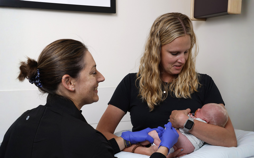 Little ones are often easier to contain during moments of tension or stress. It's important to talk calmly to your child during the hold and procedure. Pacifiers have been studied and recommended for pain relief for infants having minor procedures like vaccinations. Many doctors' offices also have a sucrose (sugar) solution available to address additional pain relief for infants, so please feel free to ask.