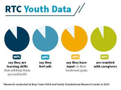 Since opening its doors in 1995, Boys Town Residential Treatment Center (RTC) has welcomed children and teens struggling with a range of behavioral and mental health challenges. Our mission is to empower the youth in our care by providing them with compassionate support, essential life skills and the expert medical care they need to thrive.