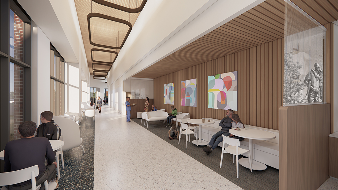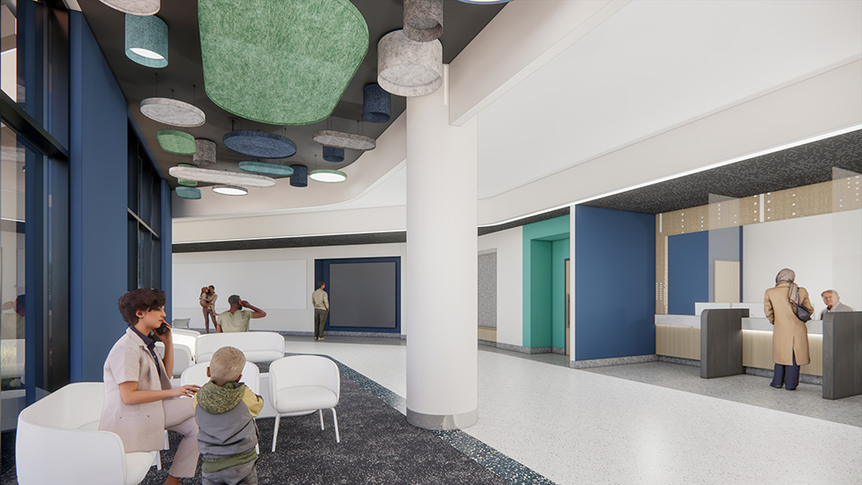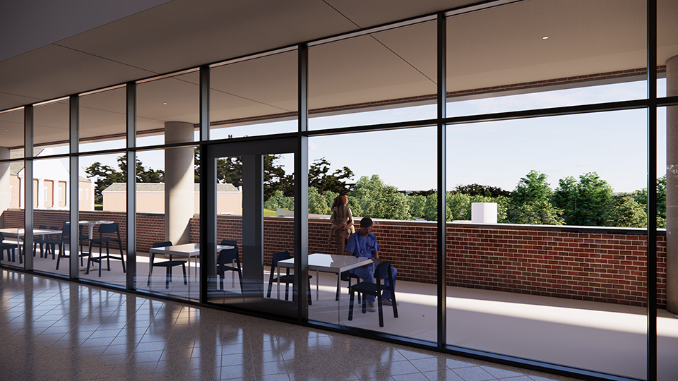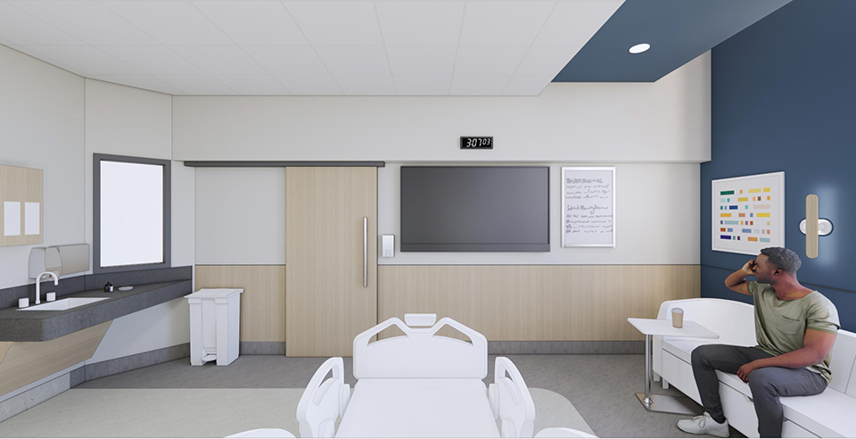 - 131,000 sq. ft. of new hospital space for acute care, imaging, and inpatient rooms